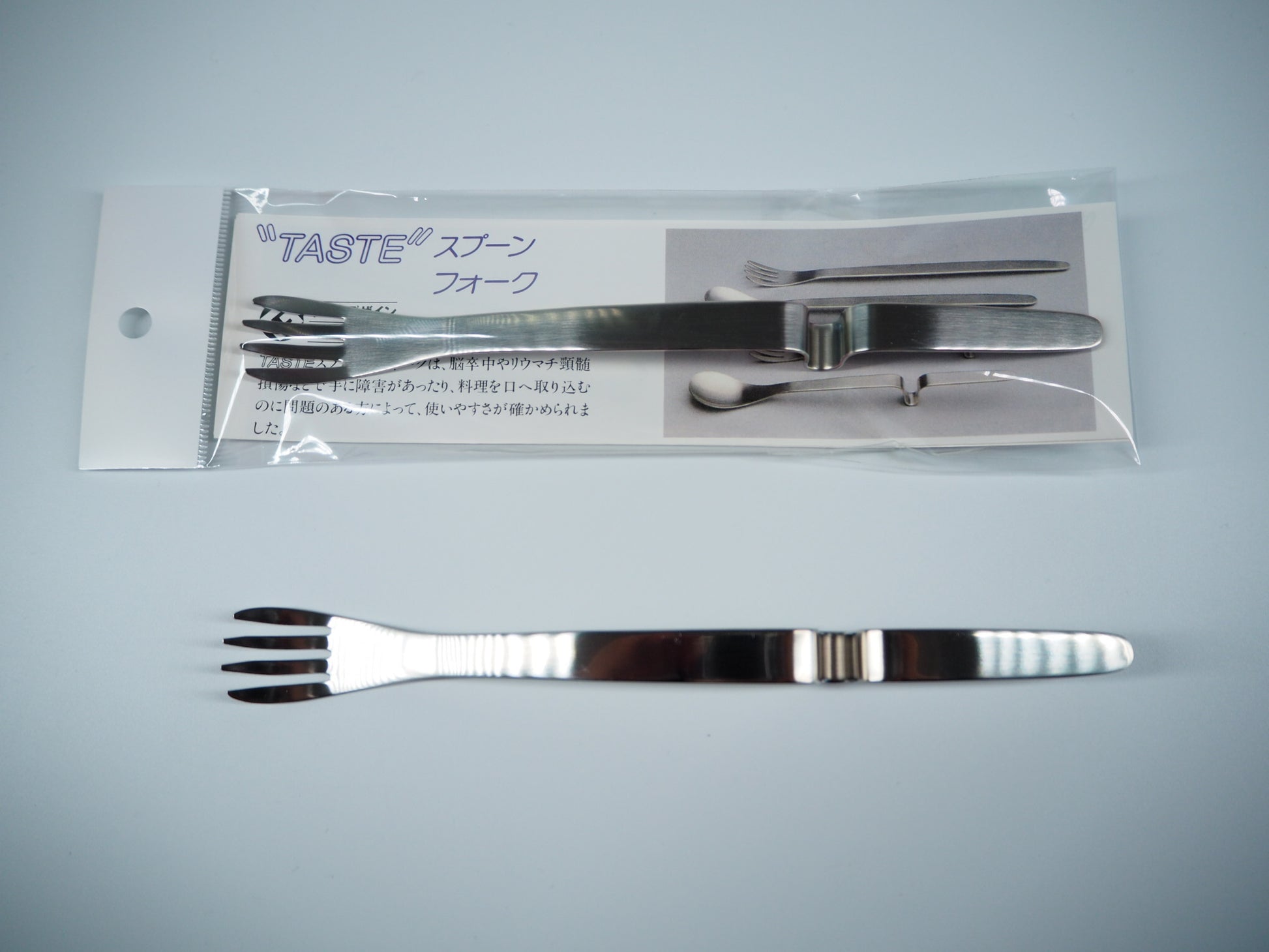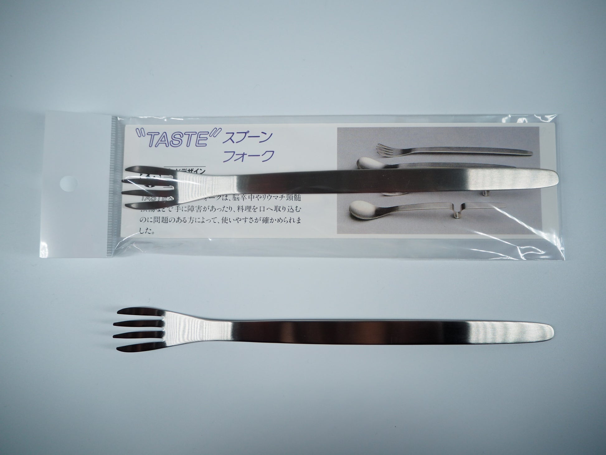 "TASTE" is a spoon and fork produced by Care Plus , a welfare equipment specialty store . It's easy to use even for those with weaker grips or narrower arm movements. Besides being easy to use, it also has a nice look.