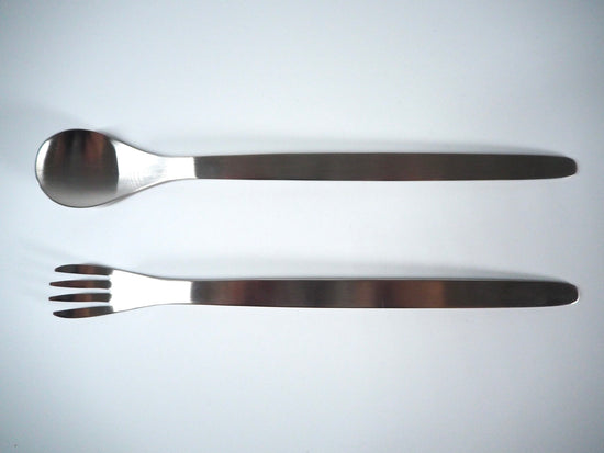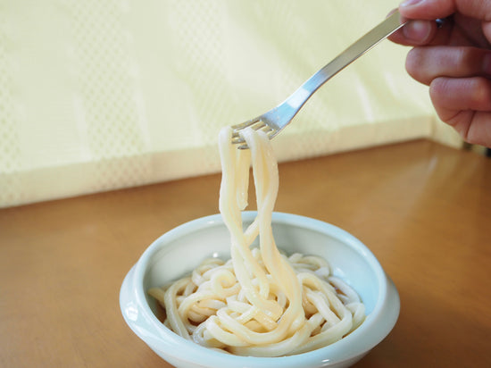TASTE's spoon and fork handles are long and light so you can use them like chopsticks. Even if you use a spoon or fork, you can continue to use your familiar Japanese utensils. The spoon has a shallow tip and a small shape that fits easily into the mouth from any angle. Because the fork's comb is short, you can also scoop the noodles.