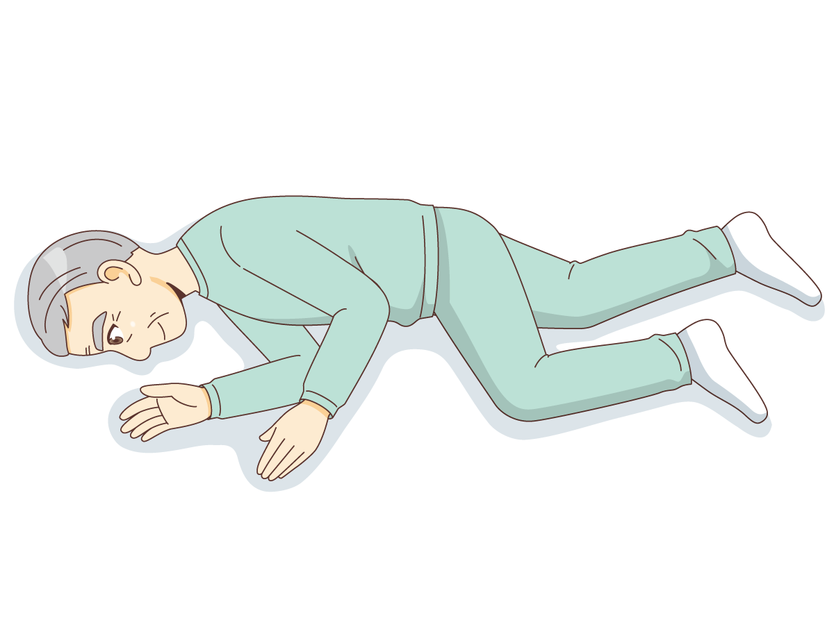 片麻痺が起こるような脳血管障害のある方は、誤嚥性肺炎のリスクが高いことが知られています。とくに、夜間に寝ているときにうまく嚥下の反射が起きないことによる不顕性誤嚥によって肺炎が起きやすいといわれます。これを防ぐ効果的な姿勢は、真横をむくようなきちんとした横向きの姿勢(完全側臥位)とされていて、これはまさしく側臥位三兄弟の「てーぼーくん」によってできる姿勢になります