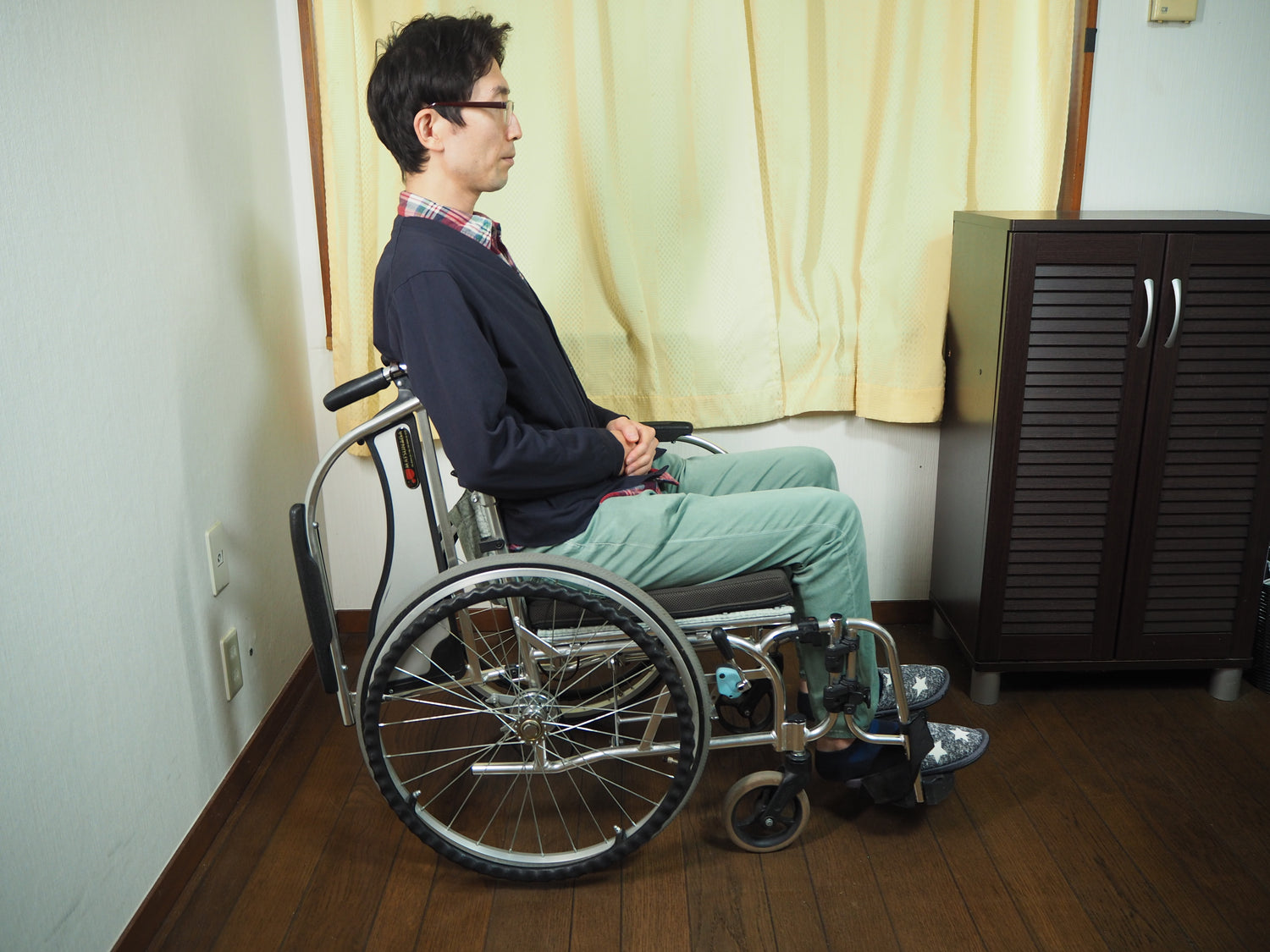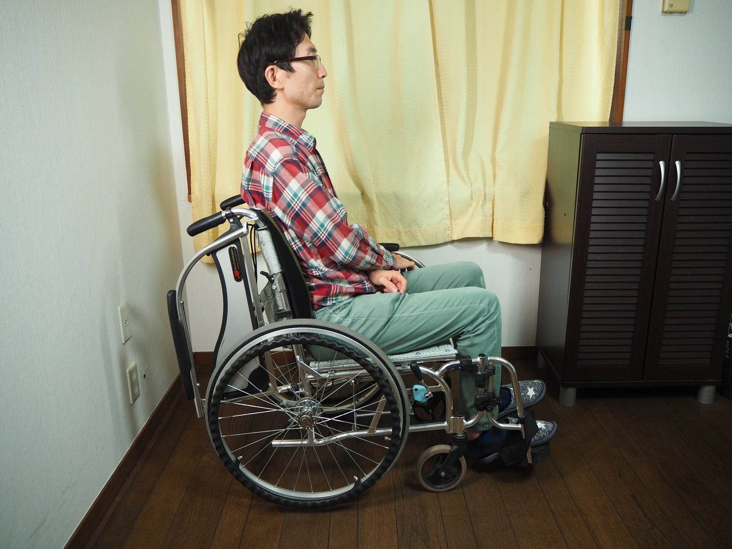 通常,轮椅的靠背是由一块布制成的平面形状。然而,这样的靠背,容易造成骨盆向后倾斜,导致脊椎出现 C 形曲线。这样会给以腰部为中心的整个背部的肌肉带来强烈的紧张感,导致腰部和肩部疼痛。并且,弯曲上半身会压迫内脏,而导致呼吸浅、消化不良。当背部弯曲时,身体被向前推,增加了褥疮等不良情况的风险。