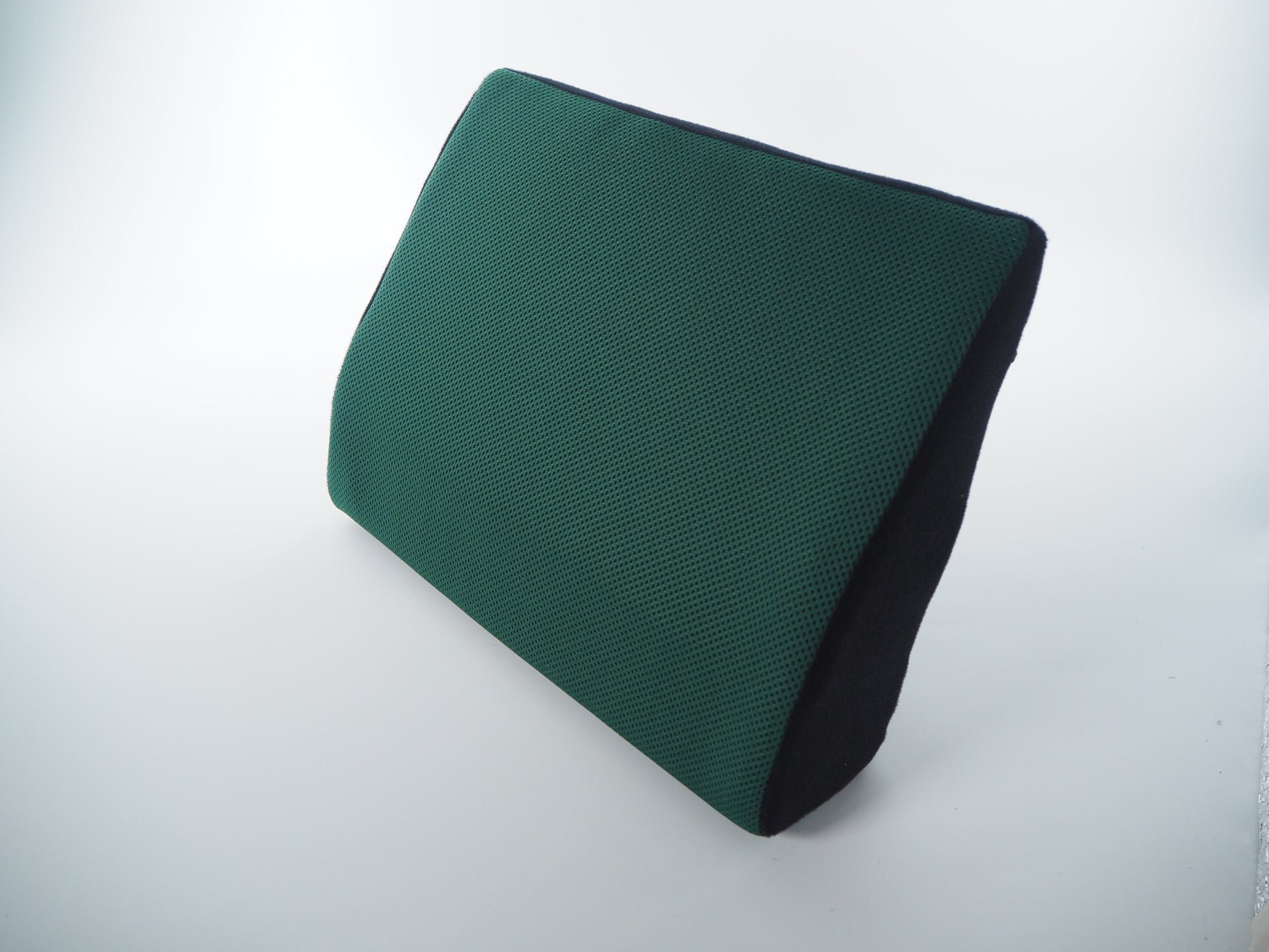これを防ぐためには、後傾しようとする骨盤を支える力(バックサポート)が必要であり、骨盤を広く適切に接する状態をつくることが体にとって一番楽な姿勢になります。ノビットシステムの「背クッション」は、骨盤を支えられるようなS字カーブになっています。背中が曲がっている方は「円背(えんぱい)用クッション」を利用することで、同様の効果を得られます。