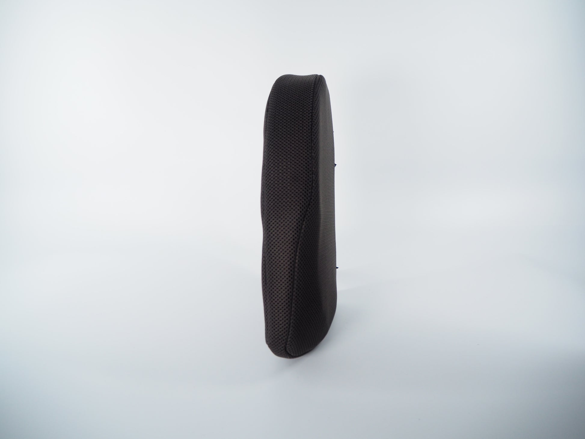これを防ぐためには、後傾しようとする骨盤を支える力(バックサポート)が必要であり、骨盤を広く適切に接する状態をつくることが体にとって一番楽な姿勢になります。ノビットシステムの「背クッション」は、骨盤を支えられるようなS字カーブになっています。背中が曲がっている方は「円背(えんぱい)用クッション」を利用することで、同様の効果を得られます。