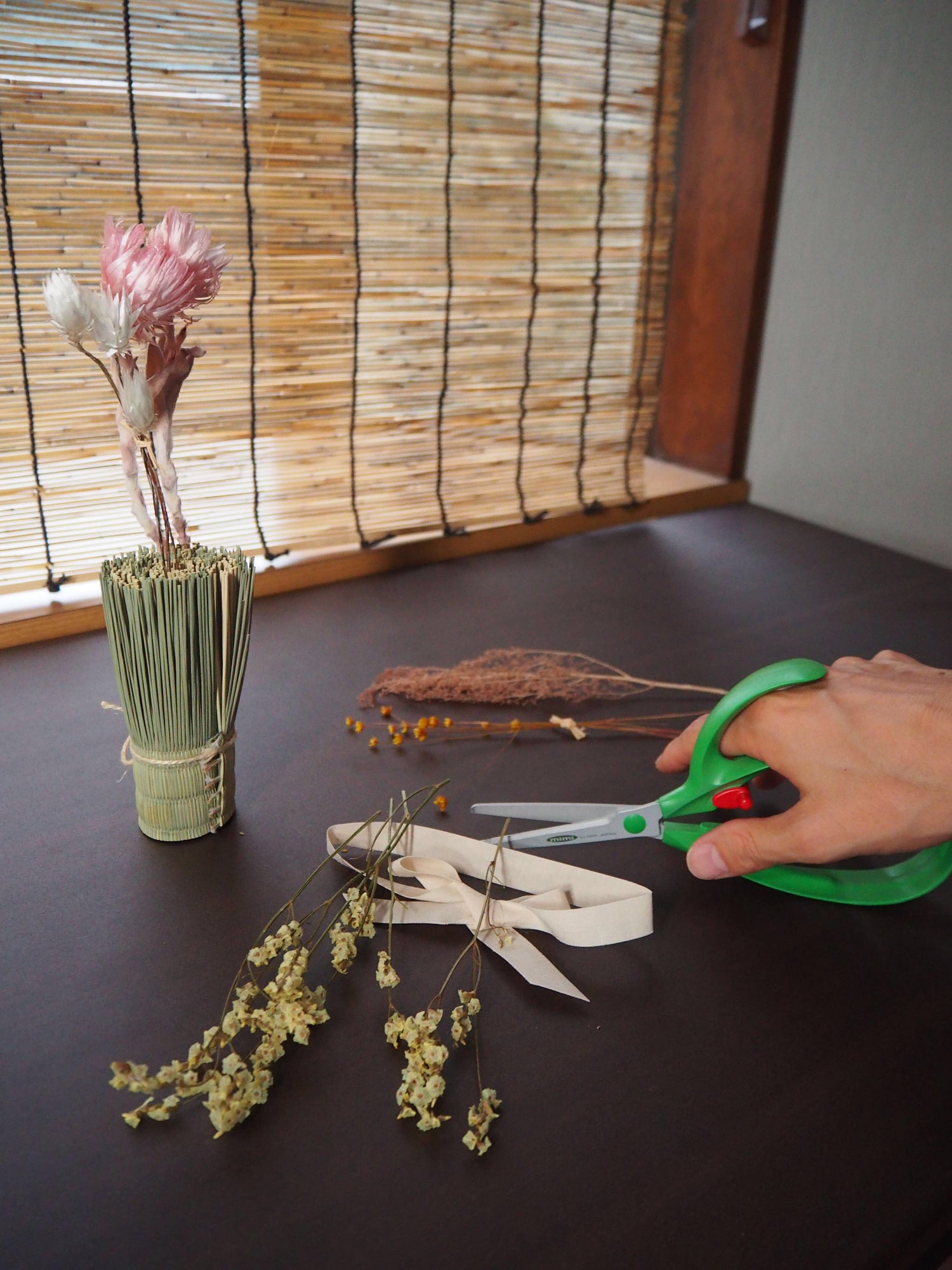这款设计是由经过在法国留学后,目前在日本活跃的花艺家GERMER(ジェルメ)的Haruna Kubota小姐设计的。它是为握力较弱的人设计的,易于进行花束的编排,不论是插在花瓶中还是挂在墙上,都呈现出优雅的设计。