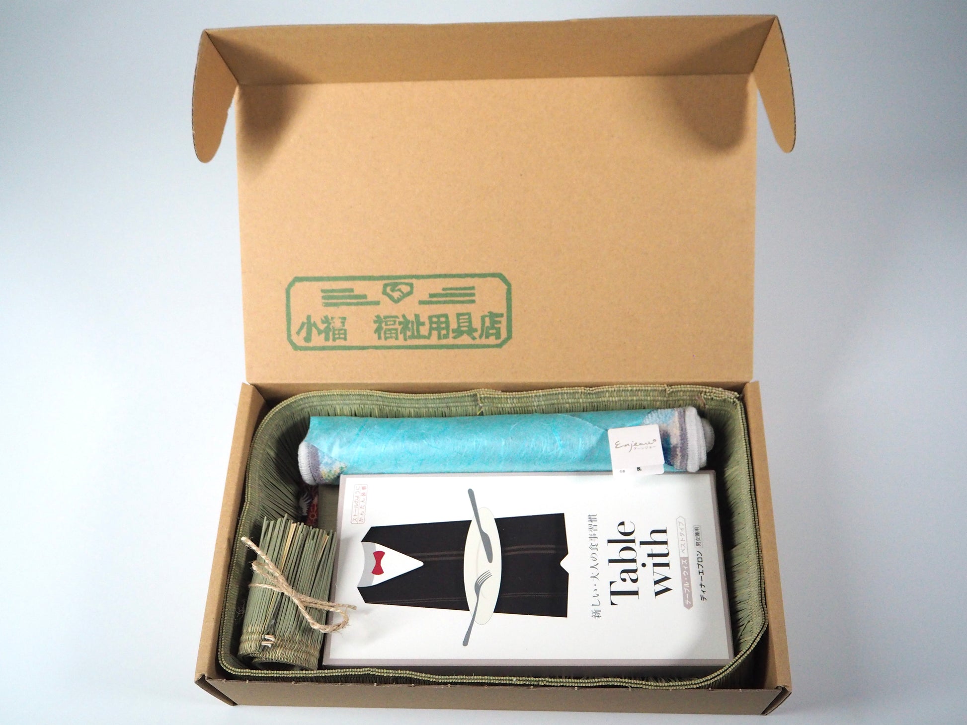 结合 Footmark 的围裙“Table with”和雪尼尔手帕“Enjeau”,它将以精美的包装交付。