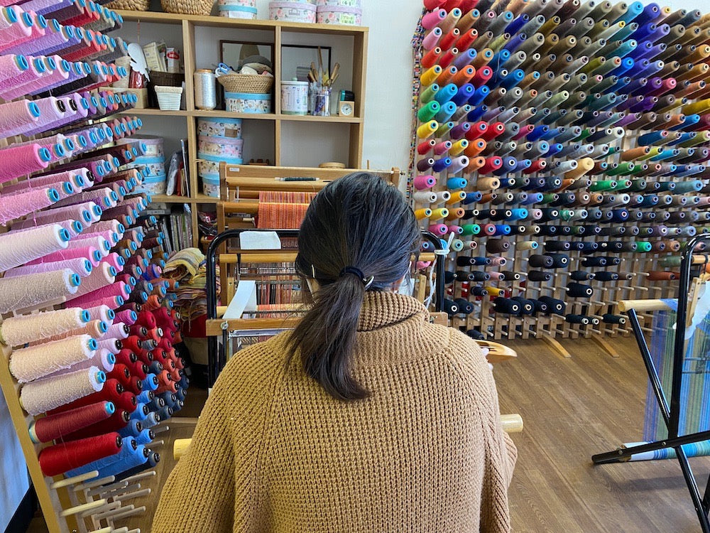 袋子所使用的“さをり織り”是由个人的感性自由编织而成。成品是独一无二的作品。穿上混合着各种美丽颜色的作品,会不知不觉地让情绪变得更加积极向上。