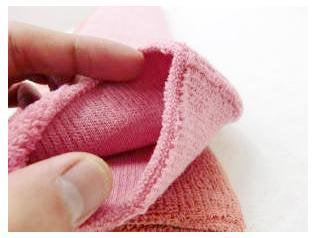 从脚踝以上部分开始,纵向细致地有凹凸(肋骨)设计。由于采用了横向伸缩的编织方式,相比没有肋骨设计的款式,更不容易束紧,更容易贴合,这是其特点。