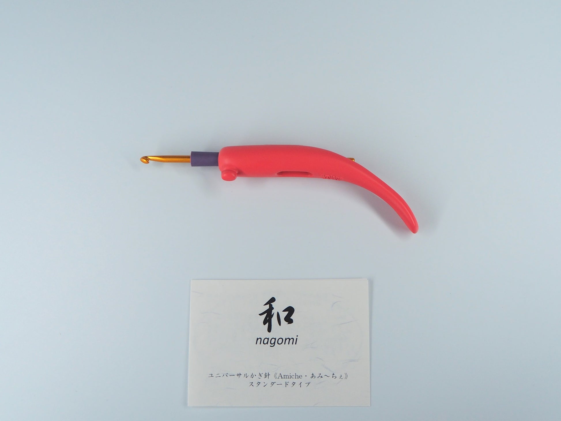 由于疾病或残疾,握住钩针的手变得无法使用......这种钩针是为这类客人开发的。可以通过用辅助带将钩针固定在手上来使用,而无需握住钩针。可减少掉针的麻烦和使劲用力而受伤的风险。 此外,依照手部运动而设计出独特的形状,厚实的手握部位使其易于抓握,主体的曲线巧妙贴合手的形状,可实现手或手臂没有负担的状态下来进行编织。 我们希望即使是那些因偏瘫而导致手部活动不方便的人士,也能通过再次享受编织的乐趣来恢复往日的精神和微笑。