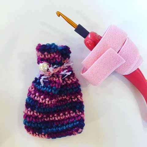 由于疾病或残疾,握住钩针的手变得无法使用......这种钩针是为这类客人开发的。可以通过用辅助带将钩针固定在手上来使用,而无需握住钩针。可减少掉针的麻烦和使劲用力而受伤的风险。 此外,依照手部运动而设计出独特的形状,厚实的手握部位使其易于抓握,主体的曲线巧妙贴合手的形状,可实现手或手臂没有负担的状态下来进行编织。 我们希望即使是那些因偏瘫而导致手部活动不方便的人士,也能通过再次享受编织的乐趣来恢复往日的精神和微笑。